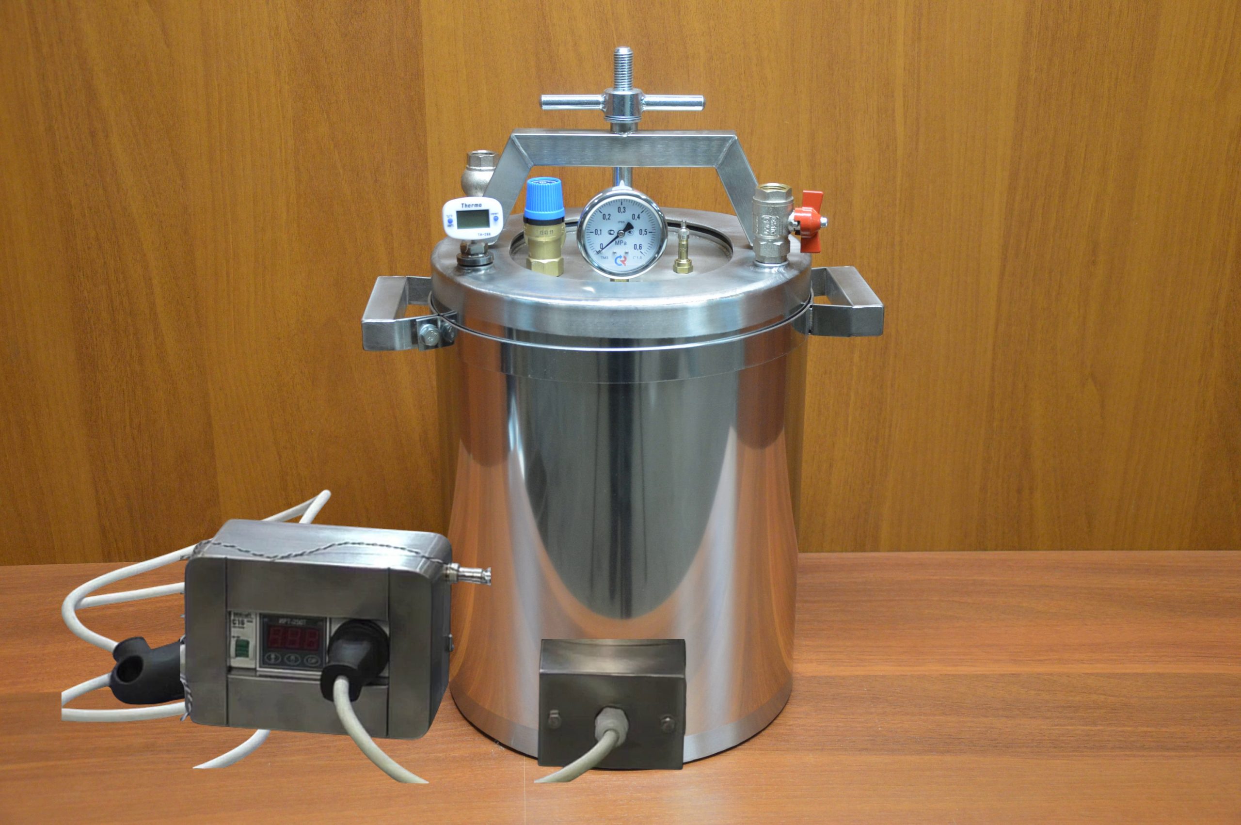 Приборы контроля, безопасности и для парового метода установлены, автоклав полностью готов к работе.